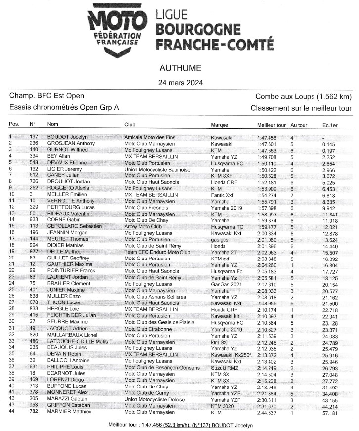 Résultats Championnat 125 BFC Est